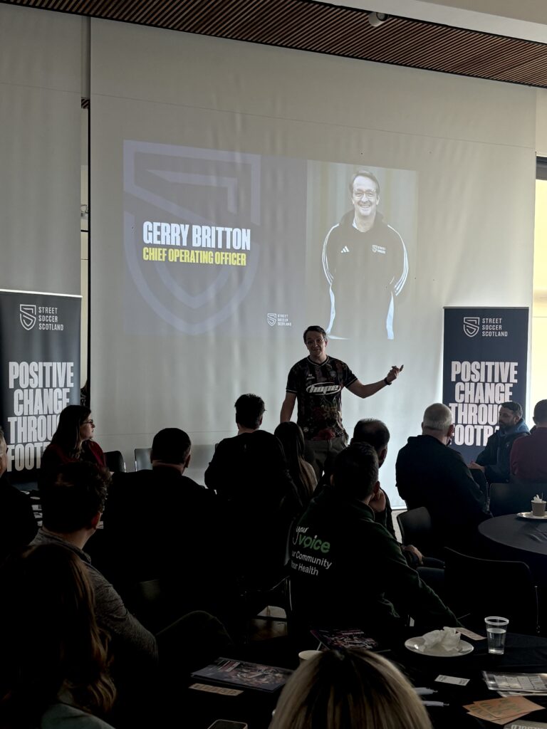 More than 50 representatives attended, starting with a networking session before moving into a series of engaging talks. Gerry Britton, Chief Operating Officer, and Stuart Lovell, Network Manager, shared insights on the organisation’s mission and the impact of the Street Soccer Network across Scotland.