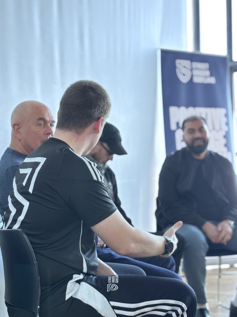 A Q&A led by Greenock Programme Coordinator Brendan McEleny featured two long-standing Street Soccer players and the Unit Manager from Jericho House, a key delivery partner in the region. The players spoke openly about their personal journeys, and the positive impact Street Soccer has had on rebuilding confidence, finding purpose, and reconnecting with their communities.